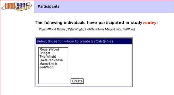 Figure 6. Screen for selecting participants for whom EZCalc© files are to be created.